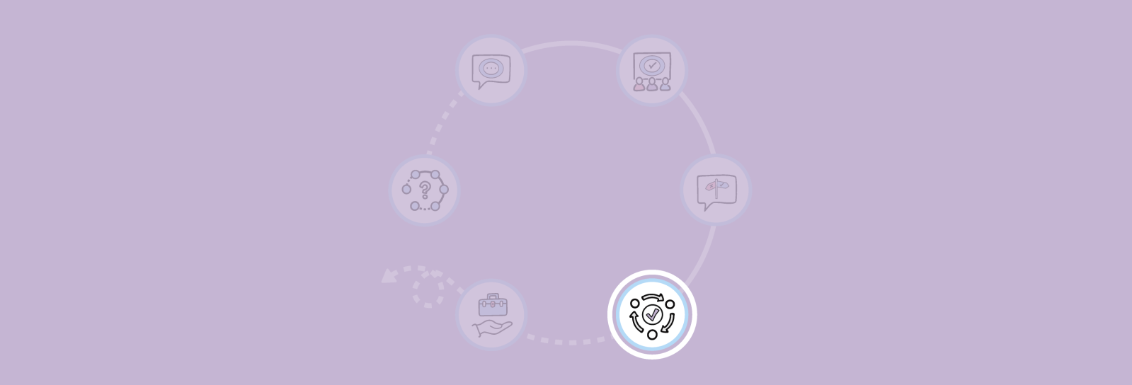 At sikre, at løsningen faktisk bliver brugt og forbliver en del af hverdagen. Ny praksis kan let tone ud i de første måneder, hvis den ikke får løbende opmærksomhed. Et kort status tjek-ind hjælper jer med at fastholde fokus, justere undervejs og understøtte forankring.